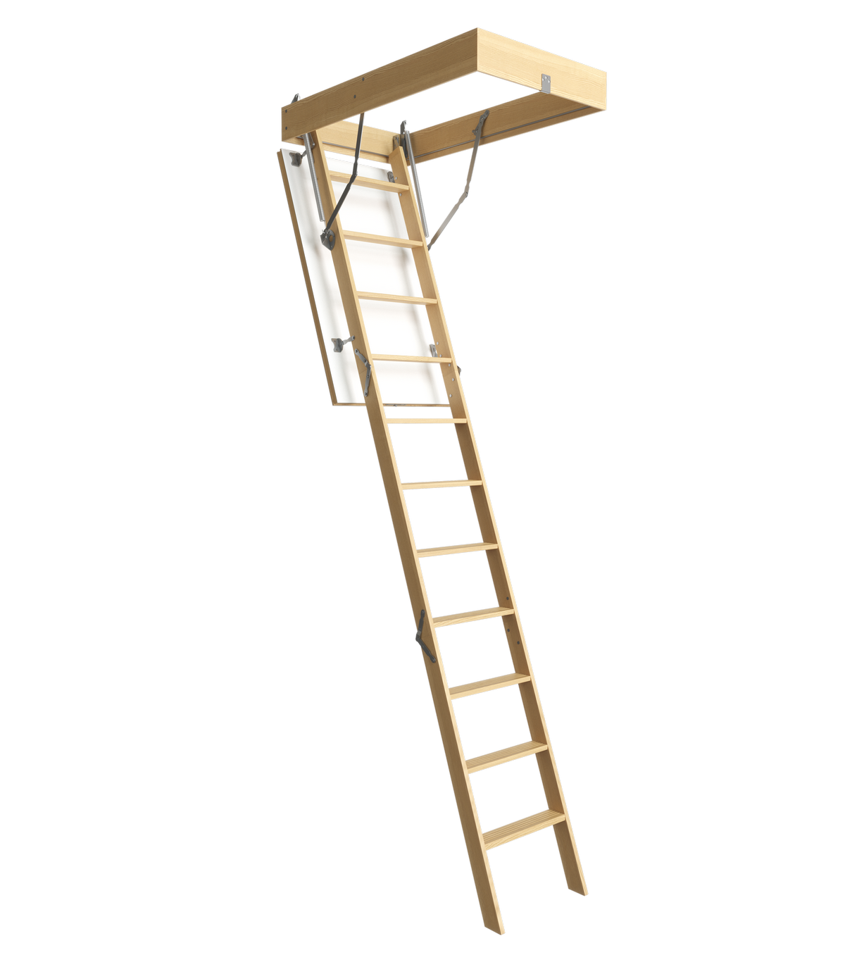 Проём в потолке для монтажа этой лестницы должен иметь размер 70*120 см, а высота помещения не превышать 300 см. По длине лестницу возможно укоротить.