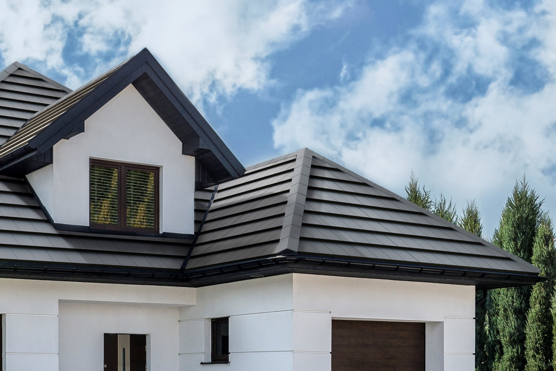 Мы модифицировали стальную черепицу FLAT, удалив тонкую тисненку на поверхности панели. В результате получили идеально ровную поверхность, которую сейчас так часто ищут дизайнеры. Созданный с учетом современного строительства, профиль модульной черепицы FLAT PLUS создает ненавязчивый рисунок на крыше. Лучше всего он проявляет себя в матовых покрытиях.