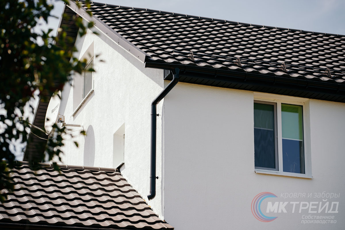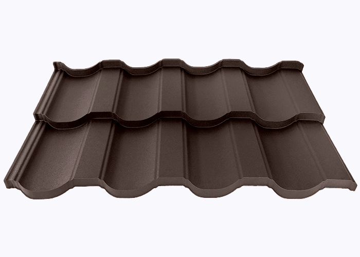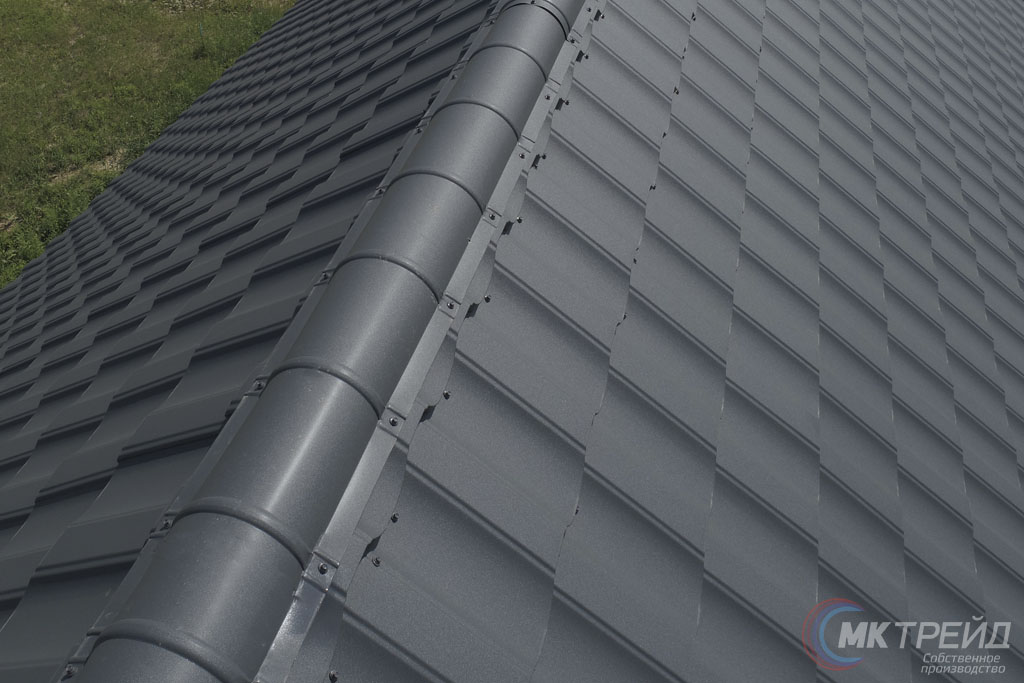 Это новое исключительное видение металлочерепицы, которая имеет оригинальную форму из четырех изгибов (ребер жёсткости), придающую дому индивидуальность, гармоничный и дорогой вид/