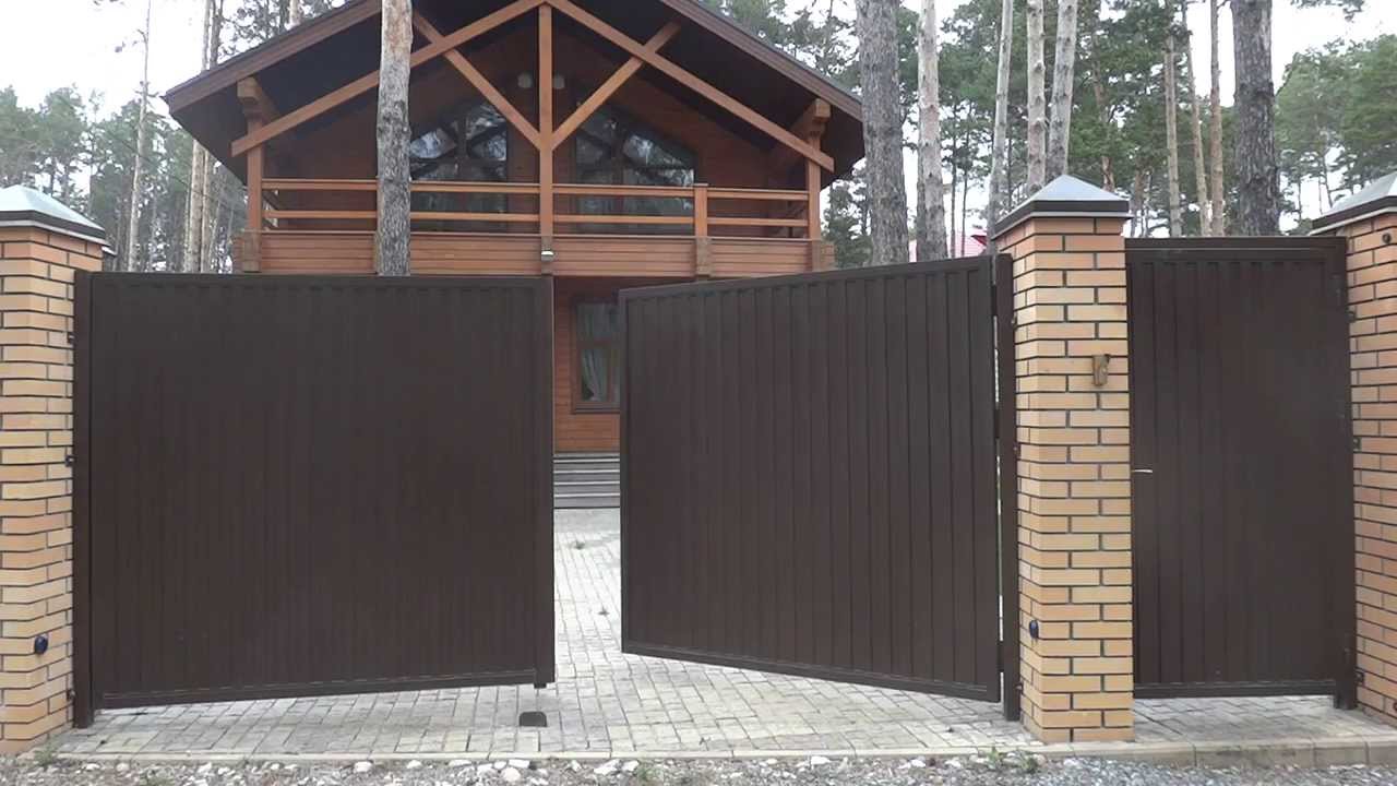 - Распашные ворота – самый популярный вариант организации приусадебного пространства, изготовленный из высококлассной оцинкованной стали. Распашной вариант состоит из двух створок, которые открываются либо внутрь, либо наружу.