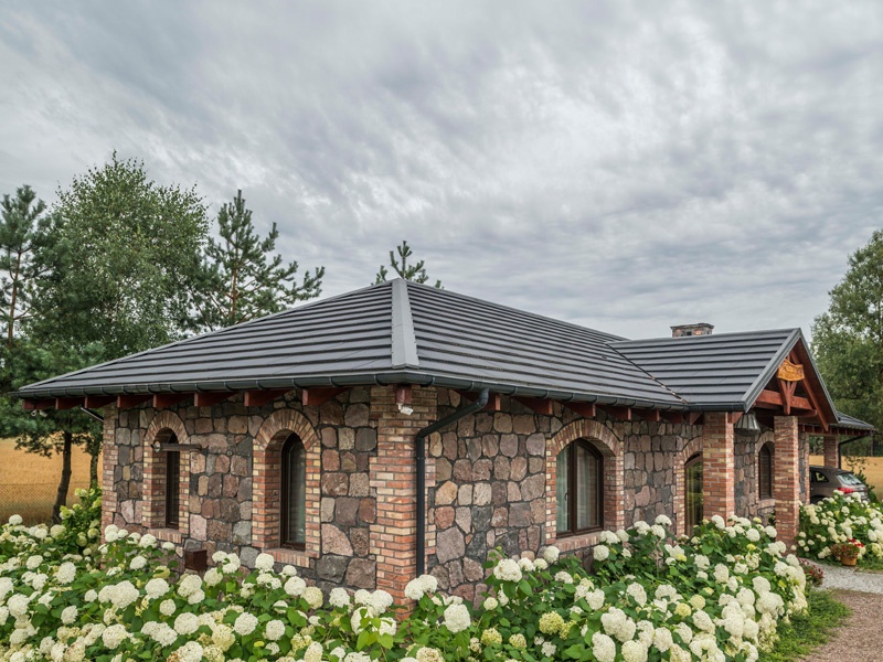 Модульная металлочерепица REGLE представляет собой уникальное кровельное покрытие, производителем которого является компания Blachy Pruszynski. Данная модель отличается необыкновенной формой, которая схожа с деревянной черепицей. Этот своеобразный дизайн станет прекрасным решением для оформления не только частных домов, но и коммерческих построек (кафе, ресторанов) в «закопанском» стиле. Эта изюминка позволит стать украшением архитектурного облика любой постройки.