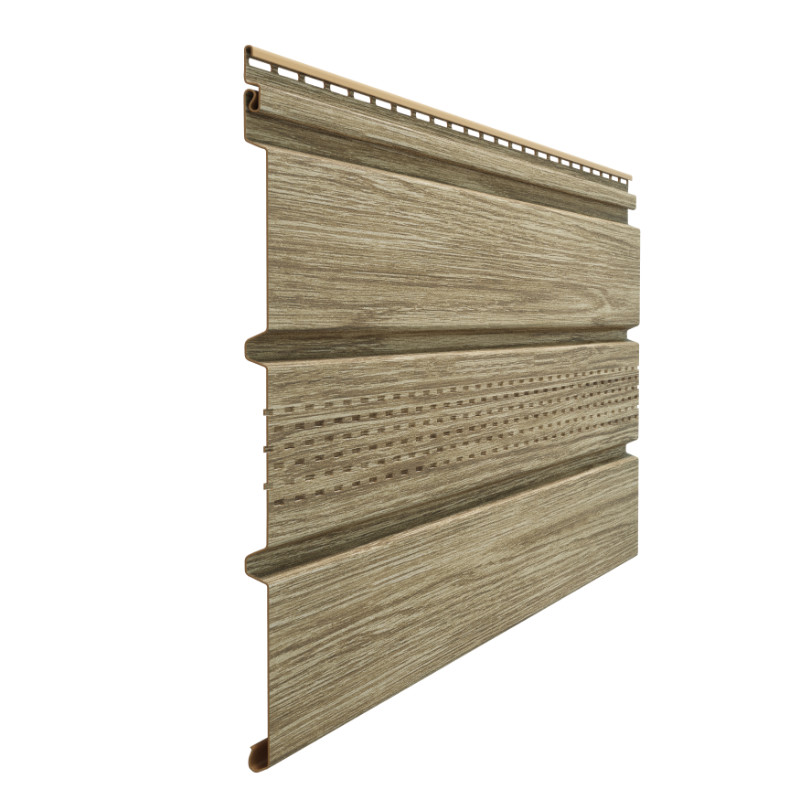 Серия LUX— это идеальное сочетание дизайна и качества. Технология глубокой офсетной печати по горячей поверхности позволила точно воспроизвести фактуру натурального дерева. Софиты с центральной перфорацией обеспечат превосходную вентиляцию подкровельного пространства и эффектно завершат отделку кровли.