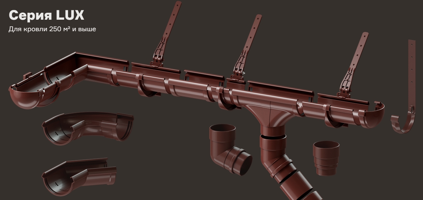 Среди ключевых достоинств кровельных водостоков Lux именитого бренда отмечают: