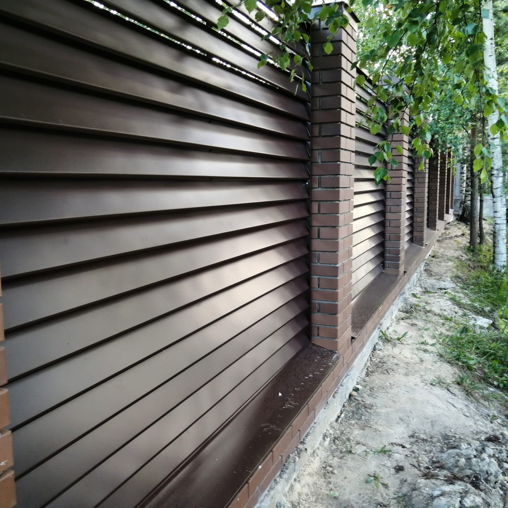 Забор-жалюзи — это ограждающая конструкция, состоящая из отдельных металлических секций.
